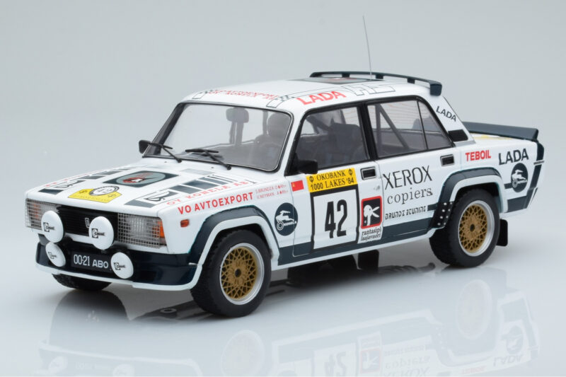 The Lada 2105 VFTS #42 S. Brundza Rally 1000 Lakes 1984 IXO 1:18 is crafted from Μέταλλο. Die-cast zinc alloy body with detailed plastic parts, rubber tires, and high-quality paint finish. Die-cast models are known for their weight, durability, and realistic feel.