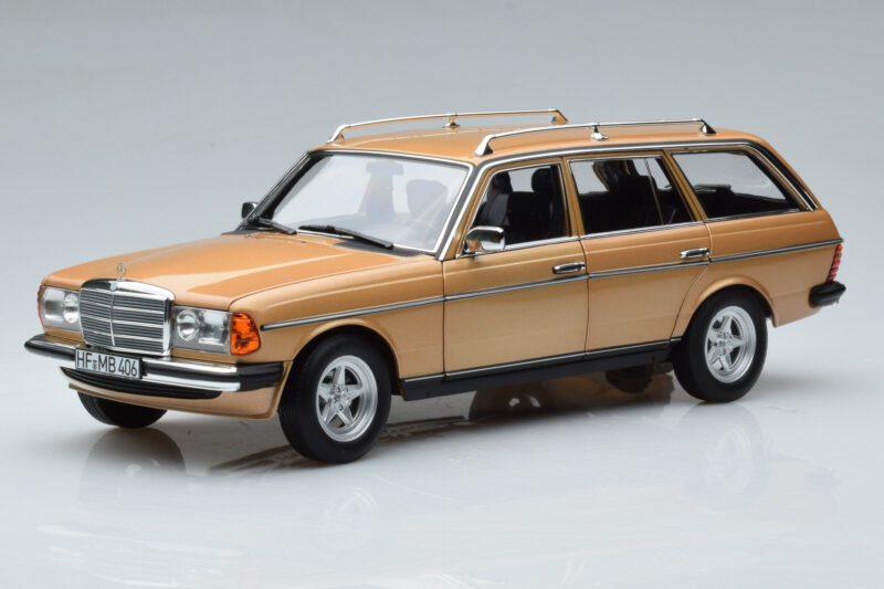 The Mercedes 200T S123 AMG Package Μπεζ Norev 1:18 is crafted from Μέταλλο. Die-cast zinc alloy body with detailed plastic parts, rubber tires, and high-quality paint finish. Die-cast models are known for their weight, durability, and realistic feel.