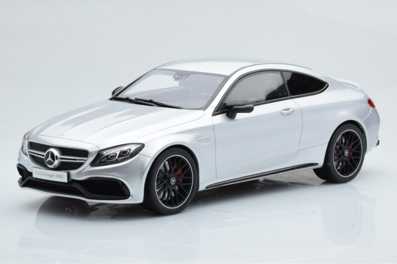 A 1:18 scale model measures approximately 25-28 cm (approximately 10-11 inches). The Mercedes C63S AMG C205 Coupe Ασημί GT Spirit 1:18 is perfect for display in a glass cabinet or on a shelf.
