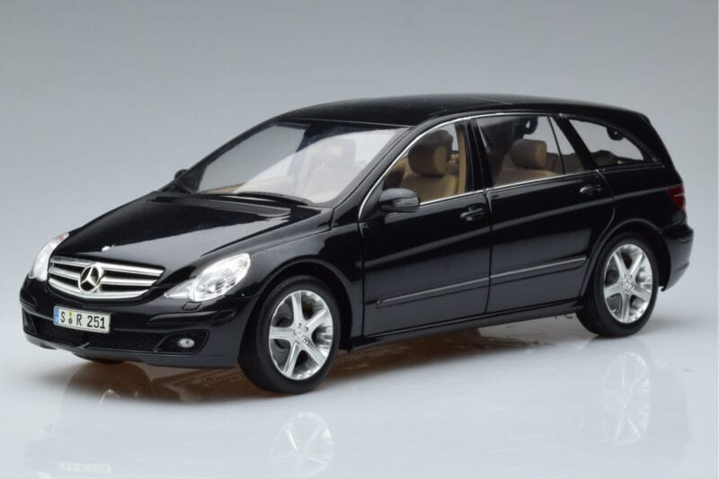 The Mercedes R-Class W251 Obsidian Μαύρο Minichamps 1:18 is crafted from Μέταλλο. Die-cast zinc alloy body with detailed plastic parts, rubber tires, and high-quality paint finish. Die-cast models are known for their weight, durability, and realistic feel.