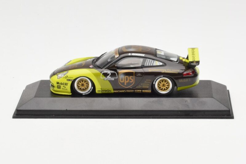 The Porsche 911 996 GT3 Cup #2 UPS Mamerow Minichamps 1:43 is crafted from Μέταλλο. Die-cast zinc alloy body with detailed plastic parts, rubber tires, and high-quality paint finish. Die-cast models are known for their weight, durability, and realistic feel.