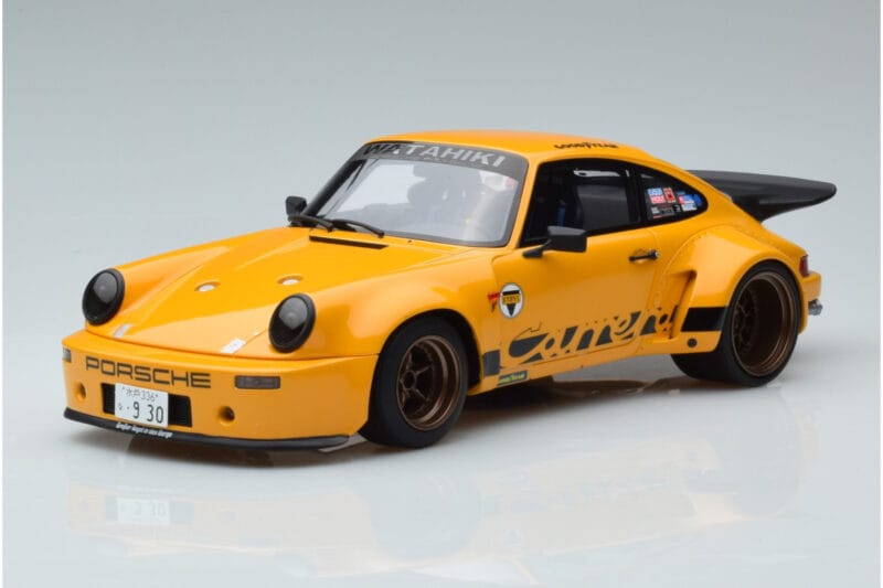 A 1:18 scale model measures approximately 25-28 cm (approximately 10-11 inches). The Porsche 911 RSR 3.0 Hommage Yamanouchi San GT Spirit 1:18 is perfect for display in a glass cabinet or on a shelf.